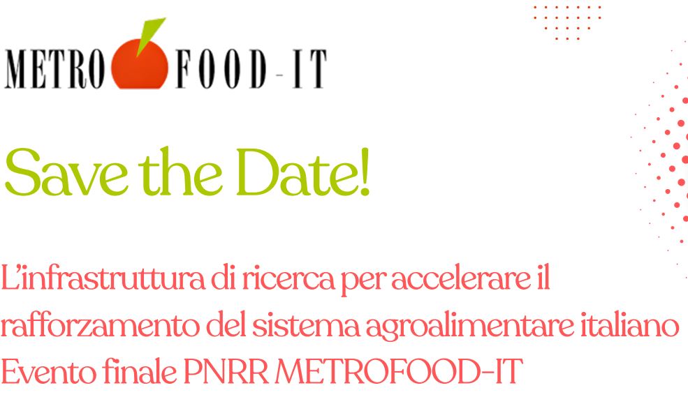Il prossimo 26 Marzo 2026 si svolgerà a Roma presso l’Aranciera dell'Orto Botanico - dalle ore 10:00 alle 16:00 - l’evento finale del progetto PNRR METROFOOD-IT.