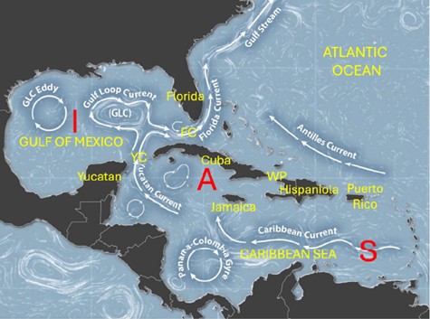 Lo studio ha utilizzato un nuovo dataset satellitare globale di livello del mare che copre più di tre decadi (dal 1993 a oggi) ed ha una risoluzione spaziale (1/8°, o circa 13.5 km) sufficiente per risolvere grandi strutture oceaniche di mesoscala. Questi dati hanno permesso di ovviare alla cronica carenza di osservazioni in situ moderne nell’area, in parte dovuta a difficoltà nelle relazioni politiche tra Cuba e gli Stati Uniti. L’aspetto più interessante che è emerso dall’analisi del nuovo dataset è la forte stagionalità del trasporto attraverso il Windward Passage, il passaggio tra Cuba e Hispaniola attraverso il quale avviene una parte significativa dello scambio tra l’Oceano Atlantico e il Mar dei Caraibi. I risultati mostrano che in buona parte dell’anno, da fine inverno all’estate, l’ingresso di acqua Atlantica è inibito dalla presenza di una coppia di vortici a sud del passaggio. In autunno, questo ostacolo viene rimosso, e l’acqua Atlantica attraversa il passaggio, penetrando profondamente all’interno del Mar dei Caraibi, tra Cuba e Jamaica.