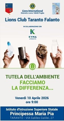 In data 10 aprile 2026, presso l’Istituto d’Istruzione Superiore Statale “Principessa Maria Pia” di Taranto, si è svolto il convegno “Tutela dell’ambiente: facciamo la differenza”, promosso dal Lions Club Taranto Falanto in collaborazione con l’Istituto scolastico.
