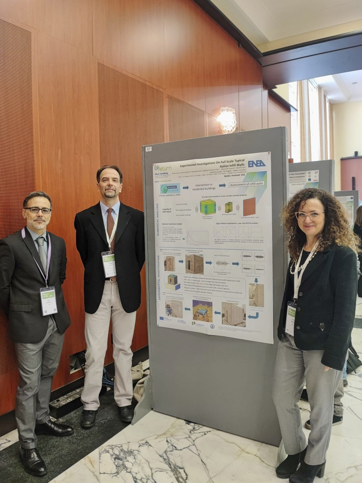 Nella sessione dedicata alla riduzione delle perdite causate da terremoti ed eruzioni vulcaniche (SPOKE VS3 "Earthquakes and Volcanoes"), i ricercatori presenti all’evento, Ivano Iovinella, Anna Marzo e Ivan Roselli, hanno presentato il poster dal titolo “Experimental investigations on full scale typical Italian infill walls”, illustrando l’esito dell’estesa attività sperimentale condotta su un prototipo 3D in scala reale, alla quale hanno partecipato anche i colleghi Patrizia Aversa, Vincenza Luprano, Saverio Mazzarelli, Fernando Saitta e Concetta Tripepi.
